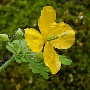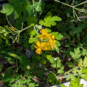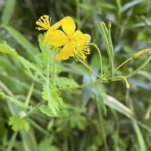 クサノオウ ケシ科クサノオウ属の越年草植物。 植物園の雑木林で、いっぱい花を咲かせていました。 種がとんで、あちこち広がっている感じです。毎年咲いていたのでしょうが、私にとっては初めて出会いでした。 茎葉を傷つけると、多種にわたる有毒アルカロイド成分を含む、橙黄色の乳汁を滲出させるらしく、有毒植物のようです。 でも、他方で、薬草として古くから利用されてきた歴史があるみたいでもあります。 和名は、草の王とも、瘡(くさ)の王とも書くみたいで、薬草として重宝されてきた歴史を感じます。