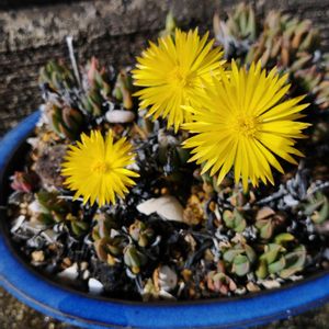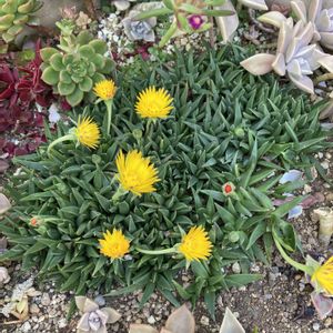 おはようございます 🌼タンポポみたいな花🌼 多肉植物ベルゲランサス 別名 3時草 樹高:約3cm花:約3cm 南アフリカ産ハマミズナ科 花は15時頃に開き🌅日没には閉じ、それを1週間くらい繰り返します 冬に強く育てやすい多肉植物🪴さんです♪〜