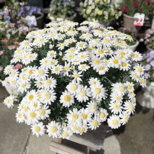 マーガレット アンジェリック スノー 大好きなホワイト×イエローのお花🥰可愛いです💕 昨年の春に植え付け。ちょっと葉っぱがスカスカだけど大きくなりました♪冬の鉢移動、頑張ってよかった✨