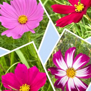 コスモス畑に4色のコスモスが ぽつりぽつり咲いていました🌸
