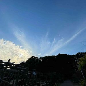 ラッキーの散歩で毎週行く 清水公園 雲がV字になっています