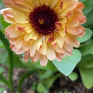 花弁裏 コーヒー色の模様がシックで大人っぽいカレンデュラ *コーヒークリーム* 暖かい陽気に誘われ咲きました ④上から見てもモチロン可愛いんですけど ベイン好きはなんと言っても裏側派 眺めながらコーヒータイム☕最高です𓂃 𓈒𓏸✲*゚