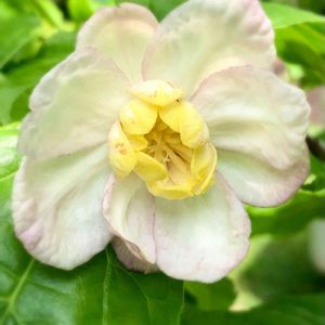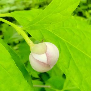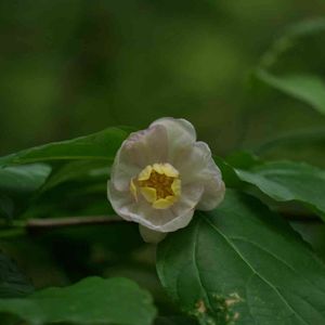 ナツロウバイ(夏蝋梅)は 冬に咲くロウバイ(蝋梅)に対して 5〜6月に咲くことから その名前が付きました。 蝋梅と呼ばれますが 花形は夏椿のようで 蝋梅のようないい香りも 殆どありません。 咲き方も蝋梅とは違い 枝先に ポツンと一輪だけ淡いピンク白のカップ状の花を咲かせます。 中国原産。 ロウバイ科ナツロウバイ属の落葉低木