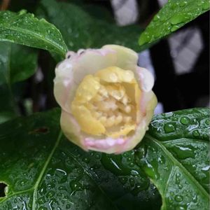 先日 つぼみで名前を教えてもらった花ナツロウバイ(夏蝋梅)が雨の中咲いていました。ちょっと下向きで咲いていました。 花期 5〜6月