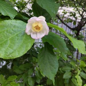 我が家の庭 ナツロウバイ(夏蝋梅) ロウバイ科 ナツロウバイ属 咲いた咲いた 淡桃色の可愛い お花が一輪だけ咲きました 嬉しい 可愛い💕