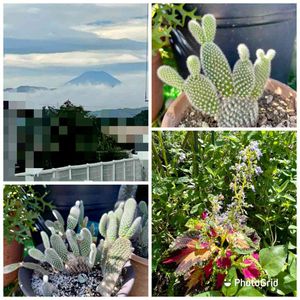 バニーカクタス mickeyのようでお迎えしたけど、最近は どうも世界交信してるみたい😅 午前中、富士山がちょこんと顔をだして ました🗻 鮮やかさを増したコリウス 🏷☀️enjoy.summer☀️