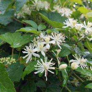 高原にたくさん咲いていました センニンソウに似ていますが、お花は小さい 詮索結果はボタンヅル 山間部に咲いてるようです❗