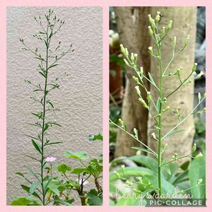 花友さんのご希望で、 今朝のゼラニウムの鉢の隅に 咲いた?雑草?をご紹介します。 今まで見たことない雑草です😅 雑草ですよね? 蕾もあるので、、 🏷金曜日の蕾たち 🏷☀️enjoy summer☀️ A Iによるとヒメムカシヨモギだそうです。 ヨモギ?!なのね〜🎶