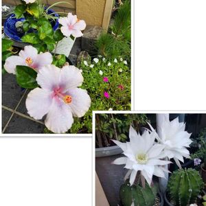 🤍🖤👸プリンセス👑開花💕 ⬅️ジャスミンホワイトプリンセス 暑い中、ずっとポツポツと咲いてる🥰 ➡️睡蓮ブラックプリンセス 念願の睡蓮のお花が見られた\(﹡ˆOˆ﹡)/ これから黒味が増すらしい🖤 ホテイソウが邪魔して、睡蓮の葉が立ち上がって花が隠れてしまってる😓