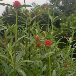 こんにちは。◕‿◕。 こぼれ種から育ったセンニチコウとスモークグラスです