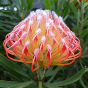 ひとつ前の投稿の花が開いたらこうなります 先が矢印のようにとんがっています 触ってみると固いです ほんとにピンクッションのようです😆