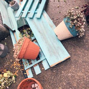 台風一過の朝です。 大部分の多肉ちゃん達は家の中に避難させたのですが、一部重そうな鉢と風の影響を受けそうのない場所だけ残しておいたら、 私手作りの棚がぶっ壊れてました😅 まぁ、この程度で済んで良かった💦 まだまだ台風の進路の方、被害が出ませんように🙏