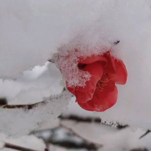 おはようございます。 大雪で、被害を受けられている皆様にお見舞い申し上げます。 こちらは予報より少なくて済んでいます。まだ 明日からの予報が、気になっているところです。 雪の中で、健気に咲いている「ボケ」です😌💓 何だか元気を貰います。 今日も素敵な一日になりますように💓