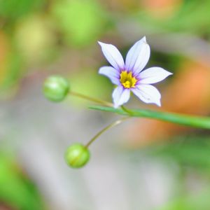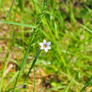 野っ原に針のような茎先に開く小さな花。直径1cm無いくらいの小さな花なんです。風に揺られてかわいい。 オオニワゼキショウっていうお名前でした。