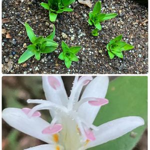 上 ゆりの新芽 ヤバい もう出てきた これから冬なのに😵 枯れるかなぁ😭 下 ホトトギス 鹿の被害から逃れた一輪の花