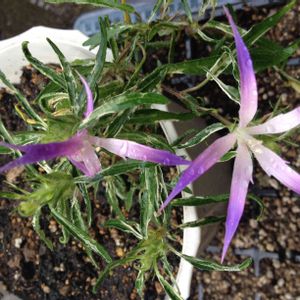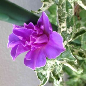 朝顔獅子咲の吹っ掛け絞りの系統 遺伝子に牡丹があるか試し蒔きの開花です。 残念ながら今日のは一重咲きだったので抜きました😂