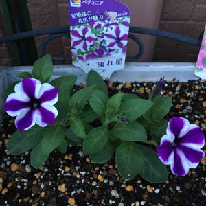 昨日またお庭に仲間が増えました(*´ω`*) 『ペチュニア』2種類で、『ペチュニア 流れ星 リンゴスター』と『ペチュニア ギュギュ グレープアイス』です。 これまた息子(4歳)の趣味なのですが、「こどもの日だから好きなもの買おう」と言ったら「もっとお花が欲しい」と(^^) いつも一緒に見ながら説明文を読んで、どんな花か教えて、選んでもらうのですが、 息子は花の見た目と色で選んでいるようで、今回は 「まだ赤は持ってないし、お星様が咲くの見たい!」 「紫はあるけど、薄い紫も欲しい!これはいっぱい増えるんでしょ?」 と、こちらになりました(*´ω`*) 先日購入のペチュニア(紫色)の隣に植えたので、少し統一感でたかな(^^;