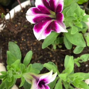 ペチュニア 流れ星 HCで 処分品の値下げ品 持ち帰って 植替えしたら 今日 元気に咲いてくれました❣️
