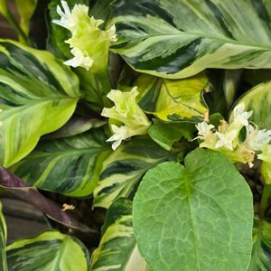 カラテアさんにお花? 豊平公園の屋内にて。 ウチにもカラテア(マコヤナ)さんは有りますがお花の気配は無いな☺