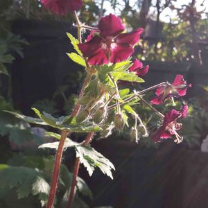 先日、偶然バラ専門店で見つけて購入した黒花フウロ。 今朝見たら一輪だけ開花してました🙌 小さな花だけど、シックな色がステキなコ。 ゲラニウムは今年2種類お迎えしたのですが、夏越しははじめて。 黒花フウロは比較的強い品種と聞いたけど、どうかな〜? ウチの庭、気に入ってくれるといいなぁ