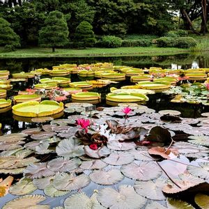 深大寺植物園です😊 大きな蓮の花🪷の葉は傷がなければ乗れるらしい(✽ ゚д゚ ✽) 体重制限はありますが⋯🤭 ちなみに、私は乗れません😭(笑)