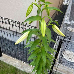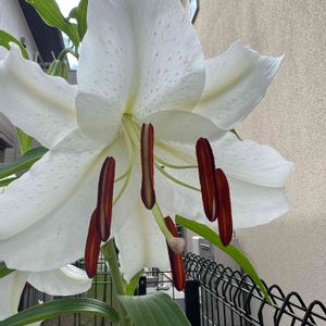「百合」です✨ 球根のタグには「カサブランカ」と書いてあるのですが、合ってますか? もう少し花びらがひらひら波打っていて、花びらの内側は突起があるのかな・・・と思っていたのですが、この百合のお花が咲きました✨ これはカサブランカなのかな・・・もし違っていたら教えてください💦 百合のお花はよくわからなくて・・・品種がわかりましたら教えてください🥰