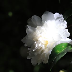 本日も連投です🎵 「白花八重サザンカ」 📷富山県八尾町 城ヶ山公園 (11月9日) 陽射しを浴びて輝く白花山茶花 です🐹