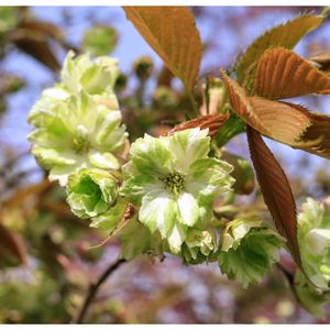 『御衣黄桜🌸』 📷八尾町城ヶ山公園にて☺ (4月19日) 咲き始めは淡い緑色、そして時が移るにつれて赤いストライプが入り薄紅色に変化する不思議な桜です (゚▽゚*)♪