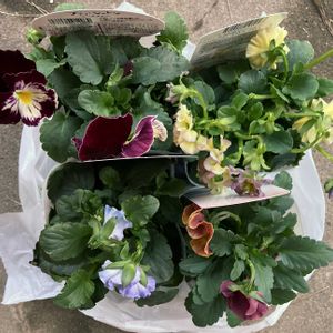 花友フェスタで購入したパンジーとビオラをバスケットで寄せ植えにしました! ずっと使いたいと思っていた葉牡丹を入れることが出来たし、柔らかな色味でまとめられたので満足です。