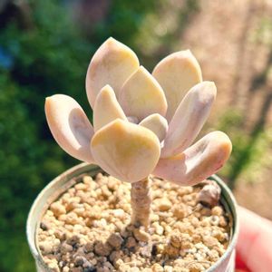 桃太郎の葉挿しっ子かと思って育てている子が白く変身中です👀 ひょっとしてneigeの方かな? …と首を傾げて見守ってます(・・;)