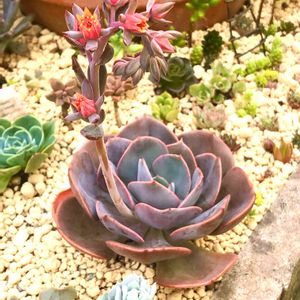 KEIKOさんに昨年頂いて1年育ててる白鳳 縁がほんのり赤くて可愛いです❤️ 少し大きくなったかなと思ってましたがKEIKOさんの投稿拝見したらまだまだでした😅 チラッと写ってるジャイアントブルーも元気(o´ω`) 昨日、長く伸びてる花芽をカットしました😅台風で他の子達をバシバシ叩きつけそうな気がしたので💦 年末年始くらいにトロピさんからお迎えした選べるセットのお粉系の子達も元気です(o´ω`)