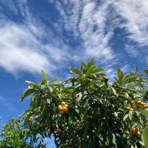 💙゚・*:.。.空と植物.。.:*・゜💛 おはようございます❣︎ 🟡今日の木の実はビワです♪♡〜 (●′艸'●) 〜♡ 🟡これまた美肌に効果があるそう〜✨👩🦲 (●′Д`●)σ))′Д`●)プニプニ