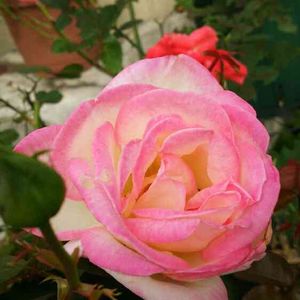 おはようございます☀友達に挿し木用に花付の枝を貰った貰ったジャンヌダルク🌹うっとり✨