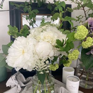 今年最後のブーケレッスン テーマはホワイトクリスマス❄️ 同じような花材だったせいか作りやすく、色が統一されてるせいか下手さもカバーされました。 それにしても、スイートピーの香りの良さったら! 一足お先に春がきた感じ💕