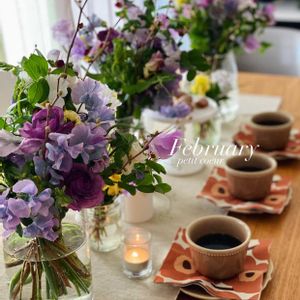 2月レギュラーレッスン備忘録 1〜3月は春のお花と枝ものを入れたブーケ 2月の枝ものはハナミズキ ラナンキュラス、スイトピー2種、切花パンジー フリフリで可愛いお花もシックな色味です💜💙 帰省時にはサンプルブーケを持参して実家でも楽しみました😊