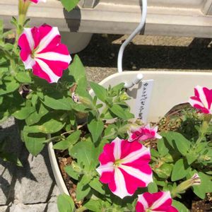 鉢植えから🪴、 プランターへ、移したのが、 咲き始めました。💜🤍🌿 伸びてたので、 切り戻してました。