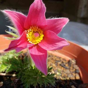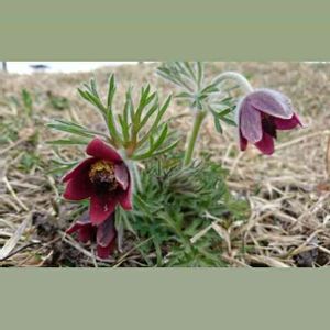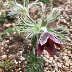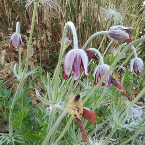 オキナグサ🌿 叔母さんちの翁草 見た目と名前が一致しないと思ったら、花後にできるタネに白く長い毛があり、そのタネが密集して風にそよぐ姿が老人の白髪のようとの理由でした💞