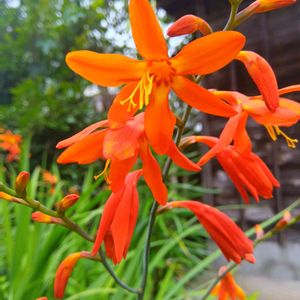 ヒメヒオウギズイセン 🌿🧡❤️🌿🧡❤️🌿🧡❤️🌿🧡❤️🌿 古屋敷の庭に一杯咲いてきました。 目が覚めるような色が美しいです😃🌸🌿