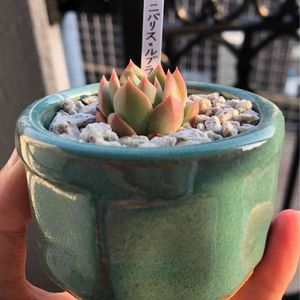 エケベリア ニバリス×ルブラ 大好きな交配種を大好きな上野焼の鉢に植え替えました😆😆 今まで鹿沼土の細粒を化粧砂に使っていましたが、風で飛ぶし水やりの時に流れるので、蘭用の軽石に変えてみました。 見栄えも良くなって、水やりもしやすくなりました😄👍🏻