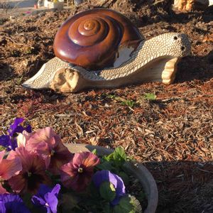 今日は子供食堂の日でした 直方 永満寺の明元寺にて 厨房をお借りして今年初めての 提供か終わりました👩🍳 帰りの境内の松の木の下に でっかいでんでん虫が‼️🐌 地元は上野焼の焼き物だそうです❣️ 可愛い💕