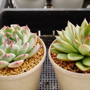 エケベリア 水蜜桃 中国版の桃太郎とも言われる子w 普通の桃太郎は、もうちょいワイルドで こっちは桃姫って感じな優しさがある子よぉ✨ チワワっぽい色合いが出て綺麗です 葉挿しもそこそこ出ますし虫も付きにくく 丈夫で育てやすいですよぉ🤣