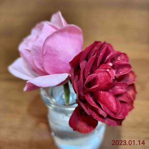 ミニバラ ジーンケニアリーの挿し木 無名の赤の接ぎ木 寒い中、よく頑張りました 小さな生花にして楽しみます ^^