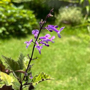 ☆庭のお花達☆ プレクトランサスの花 6月頃からよく水切れ状態だった為、 シェード下へ移動したら、 葉っぱが、みるみる大きく増え過ぎに そして、今日お花を見つけました! モナラベンダーと聞いてたけど、 調べると、少し違うような よくわからないまま、 そうであって欲しいなぁ〜