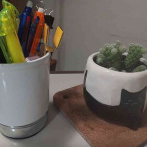 植替え後、 眠気覚ましの役割も含めて文房具の側にて活躍中です。 極稀に文鎮の役割もします。 主に、請求書など。 とても助かっています。