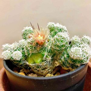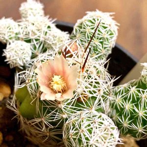 今日仲間入りしたサボテン「銀手まり」 花も可愛いです🌸