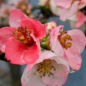 昨日実家の庭にて 🏷️0の付く日は雨粒の日 🏷️日曜日は日本を感じる和の花 ボケのお花満開でした