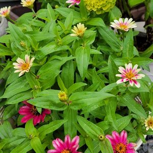 ( *ˊᗜˋ)ノこんにちゎ〜ꕤ* ・ 。..*❁:。 今日のお花 。❁*.: 。 🌸 百日草(ジニア) 実咲 🌸 種蒔からのジニアさん💗 まだ これからです💦 ❀.*・゚ 先日の ジニアさん💚も お邪魔してます♡(๑′ฅฅ‵๑) ま〜るく 大きく なりました 🌼 午後もガンバです♡o(´∀`o*) ・