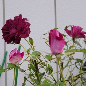 ( *ˊᗜˋ)ノこんにちゎ〜ꕤ* 🌹 バーガンディアイスバーグ 🌹 🌿 食べられていますが 😅 綺麗に 咲いてくれています 🥀 ・