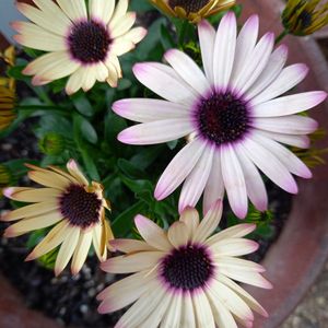 おはようございます👋 ずーっと欲しかったオステオスペルマム アキラさん見つけました😊💕 咲き始めから日が進むに連れて色が 変わって行くお花が魅力的です💕 花びらの先がピンク色になるのも 気に入ってます🎶 ヒューケラドルチェヘブンも一緒に お迎えしました😊💕🎶