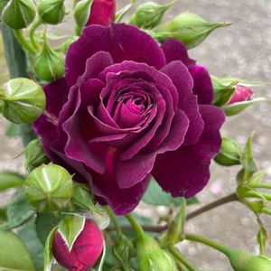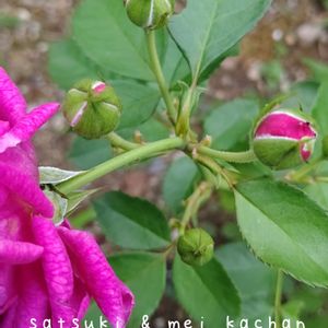 紫色のバラも開花しました! こちらは、お迎えして2年目😊 すごい束になって蕾が💦 大きな花を咲かすには、摘心?蕾を摘んだ方がいいのでしょうね😅 でも、なんだかかわいそう💦 全部は咲かないかな~💦